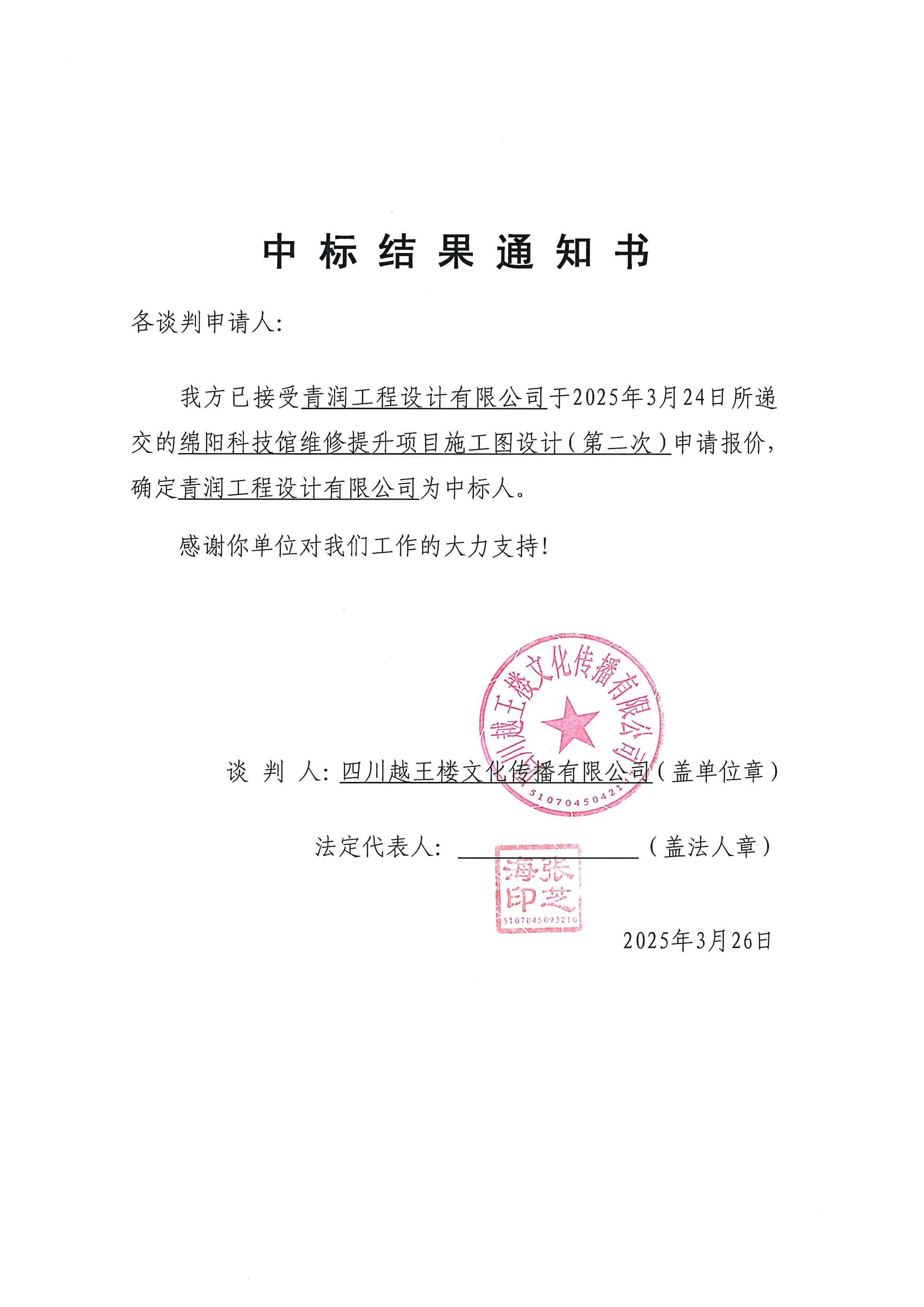 綿陽(yáng)科技館維修提升項(xiàng)目施工圖設(shè)計(jì)(第二次)競(jìng)爭(zhēng)性談判結(jié)果公告